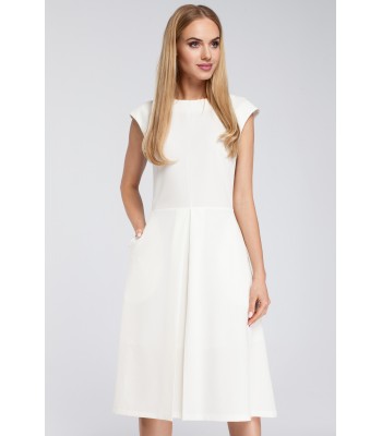 Polished and professional, this midi length dress with an inverted pleat catches the eye to a slim waist with its fitted bodice and trapeze dress.