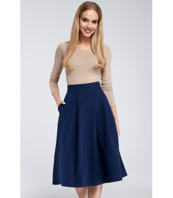 Pleat-flared skirt tailored with a banded waist and cut to knee-skimming length. Simple and classy. The two side pockets were added to add a bit more volume to the A-line silhouette.