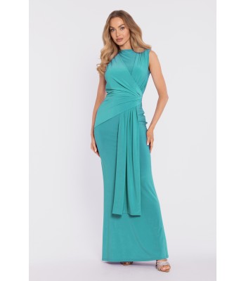 M913 Sukienka maxi z drapowaniem i podkreśloną talią - turkusowa