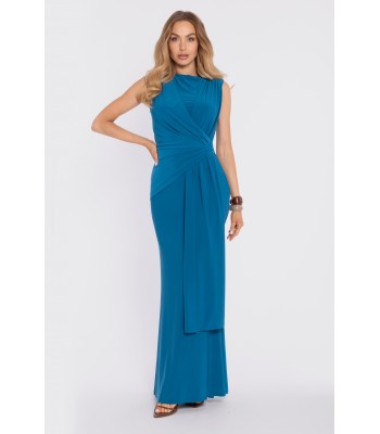 M913 Sukienka maxi z drapowaniem i podkreśloną talią - morska