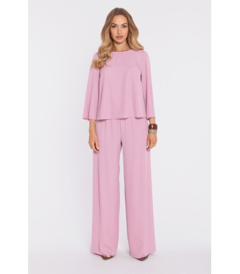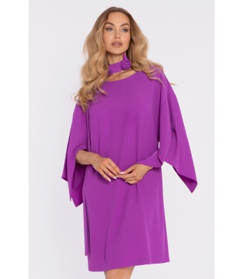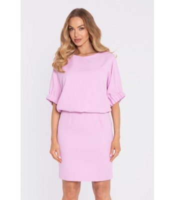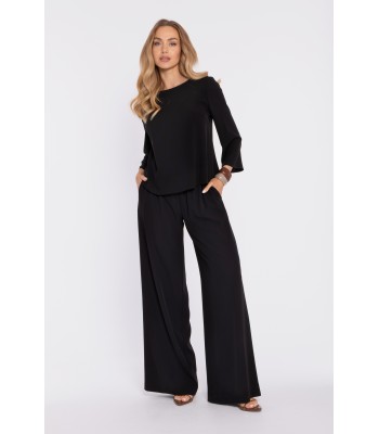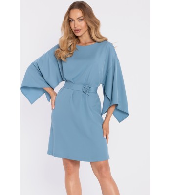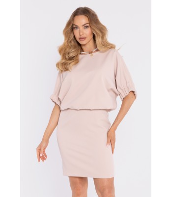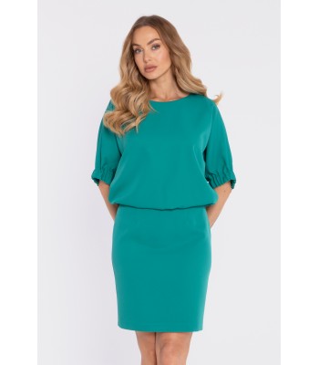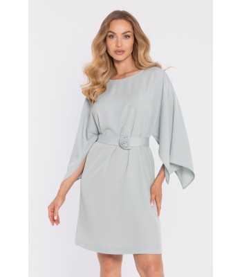 - Kształt: góra dopasowana z miękkim układem tkaniny, talia zaakcentowana, dół opływający i wydłużający nogi.