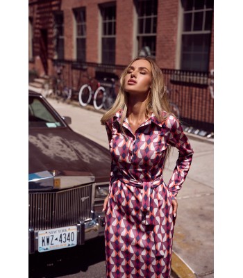 M749 Sukienka żakietowa z paskiem - różowa