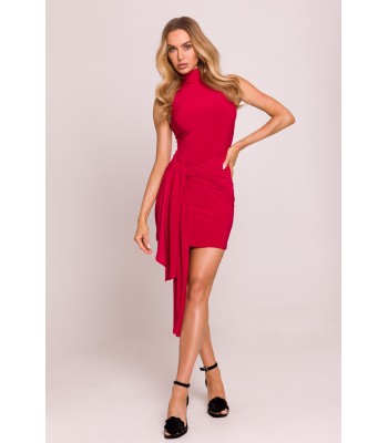 M841 Sukienka mini z wiązanymi szarfami - turkusowa