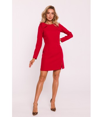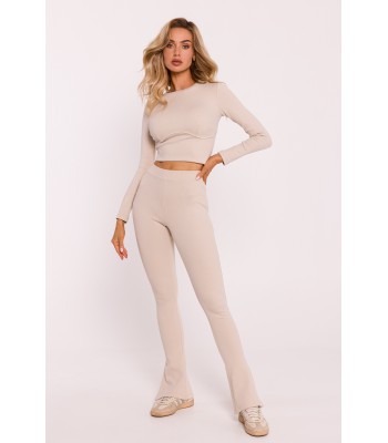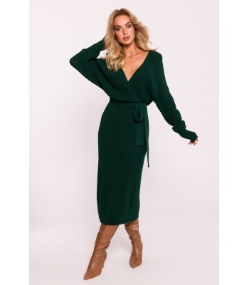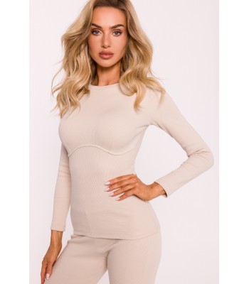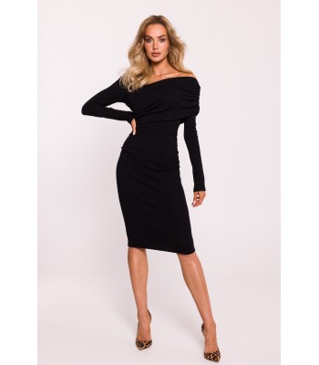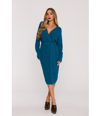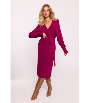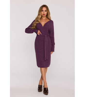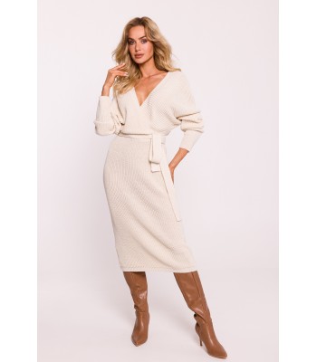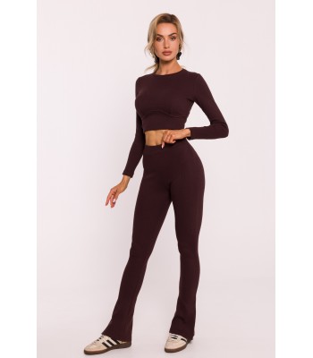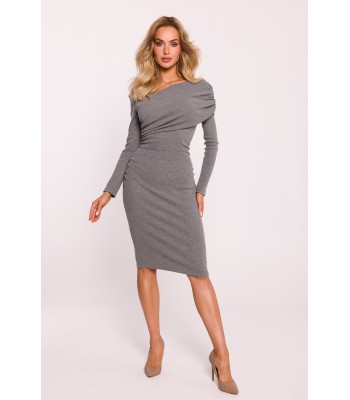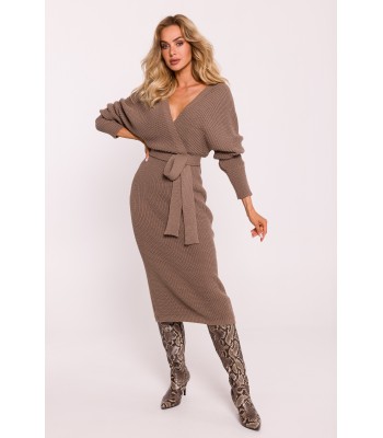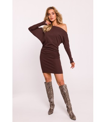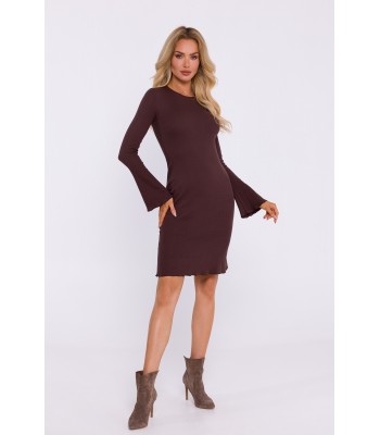 M821 Sukienka prążkowana z poszerzonymi rękawami - brązowa